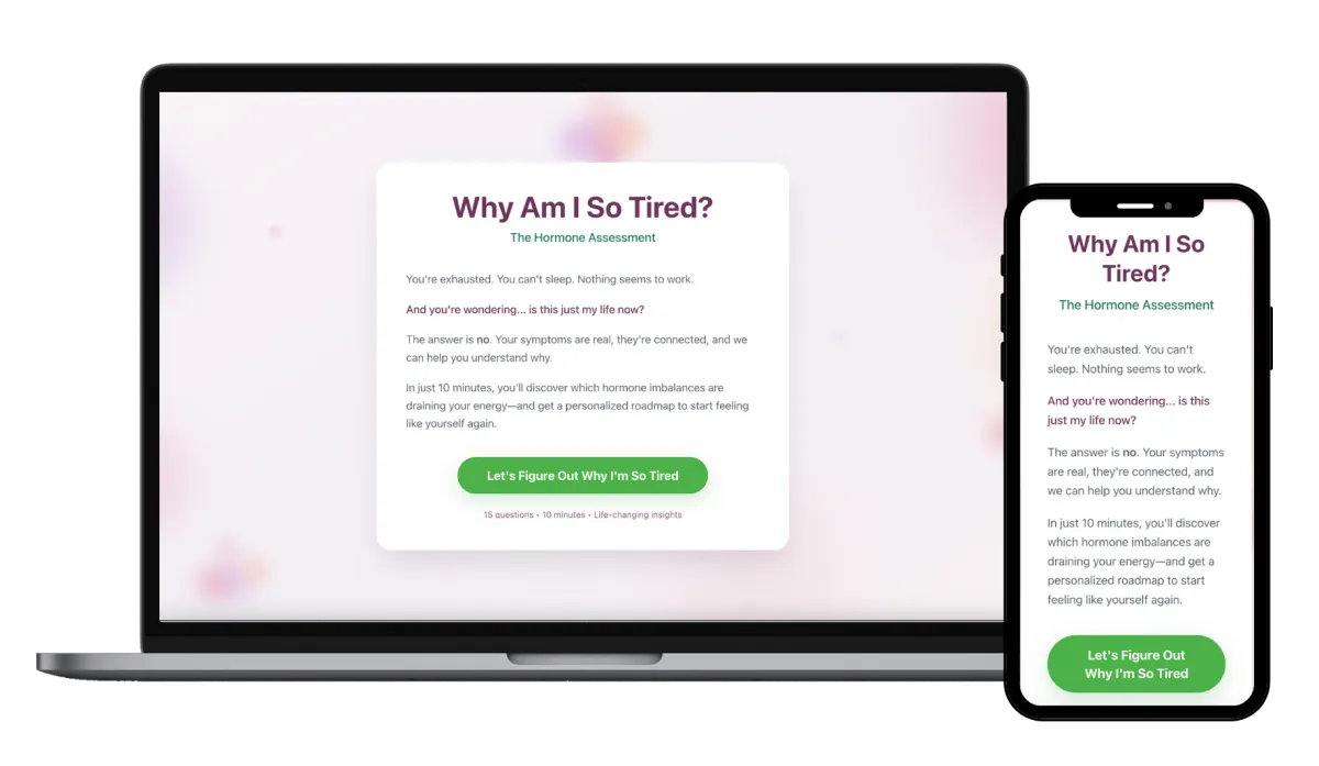 The "Why Am I So Tired?" Assessment helps you finally understand which hormone is sabotaging your sleep, weight, and sanity—so you can stop blaming yourself for being "lazy" and start healing what's actually broken.